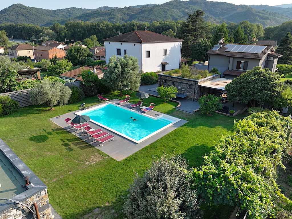 Refined and relaxing villa with private pool and exclusive garden surrounded by nature. Located in the heart of Cilento, the villa is near Omignano railway station, it is only 2 minutes by car from the "Cilentana" highway that connects the most beautiful and renowned resorts of Cilento and only 20 minutes from the beautiful sandy beaches of Ascea Marina and Casal Velino Marina. The villa comfortably accommodates 10 guests and consists of two structures with the large garden equipped with a private swimming pool in the center. The main structure offers 3 double bedrooms with private bathroom, a reading room and two small living rooms, one with a sofa bed for a total of 7 beds. The annex has a large kitchen equipped with a dining area for 10 guests, a double bedroom with a sofa bed, a single bedroom with a private bathroom ensuring 3 comfortable beds. The villa is equipped with private parking, laundry room, equipped patio, outdoor dining area with barbecue, swimming pool with sun beds, equipped kitchen, outdoor shower and wifi internet. The property is surrounded by a fantastic orchard and an vegetable garden that the owners make available to guests.